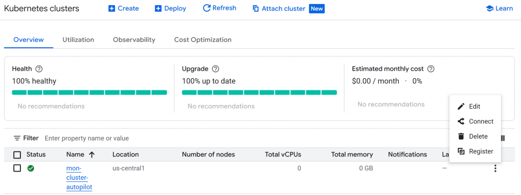 2.4 – Tester l’accès au cluster situé sur le cloud de Google