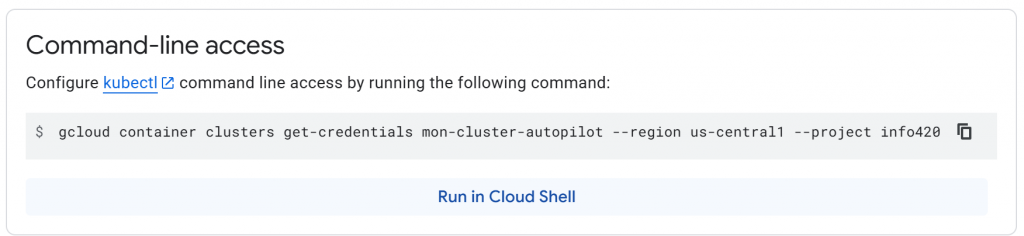 gcloud container clusters get-credentials mon-cluster-autopilot --region us-central1 --project info420