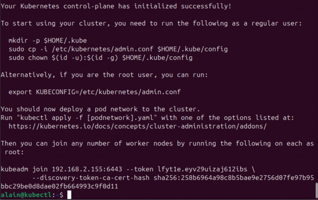 mkdir -p $HOME/.kube sudo cp -i /etc/kubernetes/admin.conf $HOME/.kube/config sudo chown $(id -u):$(id -g) $HOME/.kube/config