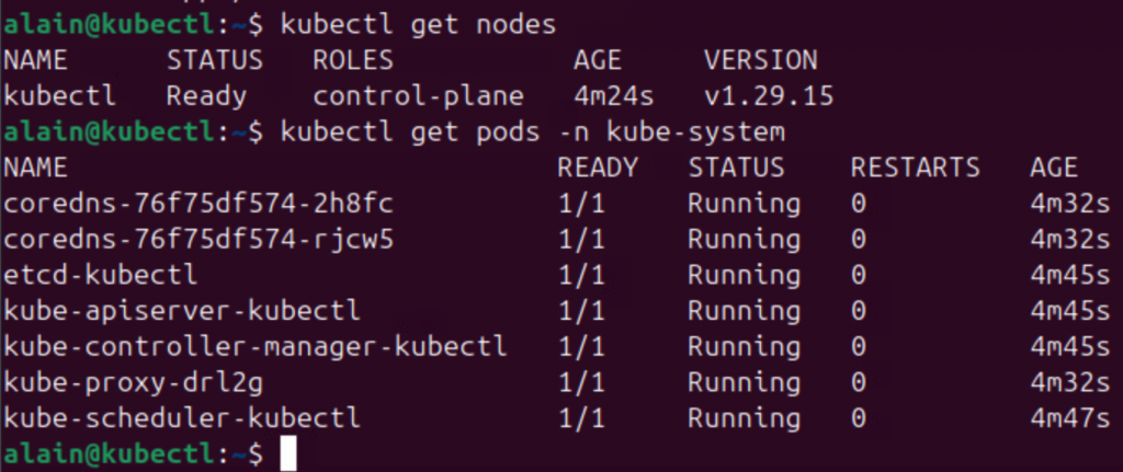 kubectl get nodes kubectl get pods -n kube-system